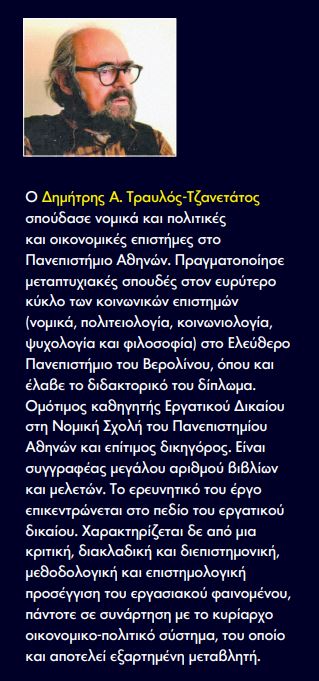 Ο Δημήτρης Α. Τραυλός-Τζανετάτος είναι από τους λίγους, ή ακριβέστερα από τους ελάχιστους διανοούμενους και πανεπιστημιακούς στη χώρα μας, που μελετά, αναζητά, ψάχνει και τεκμηριώνει μια οπτική και μια κριτική σε όσα φαντασμαγορικά αναγγέλλονται και διακηρύσσονται σχετικά με τον ψηφιακό καπιταλισμό, τις καινοτομίες, τη Μεγάλη Επανεκκίνηση και άλλες σύγχρονες τεχνο-ουτοπίες. Τεχνο-ουτοπίες που, όμως, διαμορφώνουν το γενικό πλαίσιο της κεφαλαιοκρατικής κίνησης σε στιγμές πολυδιάστατης οργανικής κρίσης και μετάβασης. Είναι από τους ελάχιστους με διαρκή μαχητική παρουσία για πενήντα ολόκληρα χρόνια στο πλευρό της ζωντανής εργασίας, των εργαζομένων. Ενδεικτική είναι, από αυτήν την άποψη, η αφιέρωση του έργου του «Το εργατικό δίκαιο στην τέταρτη βιομηχανική επανάσταση» (εκδόσεις Σάκκουλα, 2019) στο «ψηφιακό προλεταριάτο» – όπως και η διδακτορική του διατριβή στη Γερμανία το 1974 είχε αφιερωθεί στον «έλληνα εργαζόμενο».